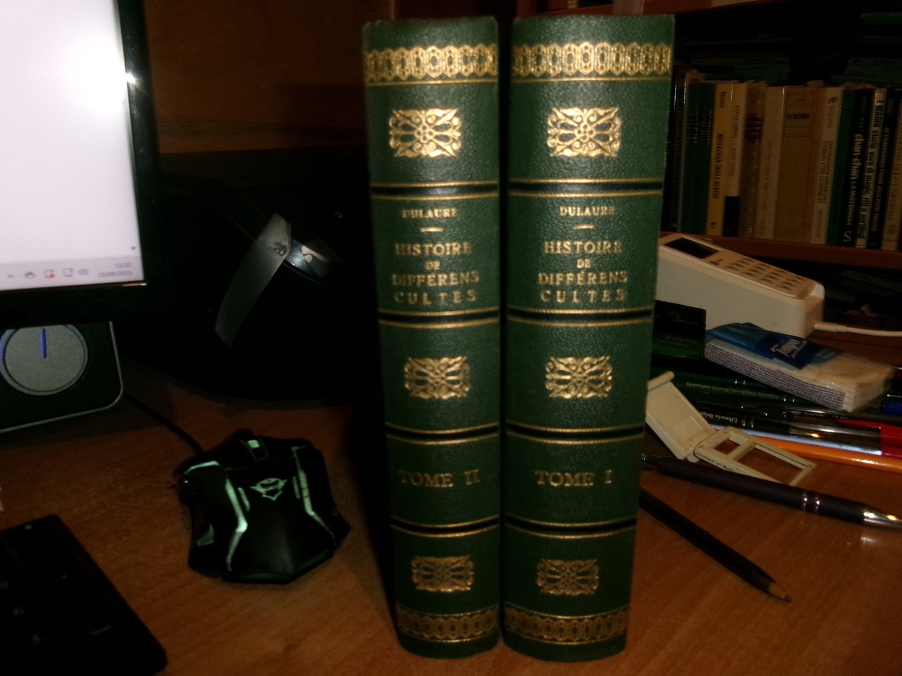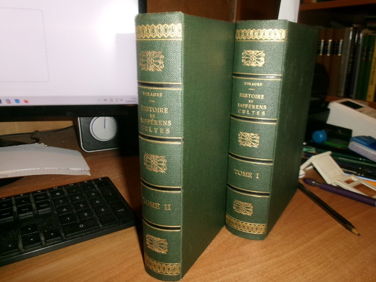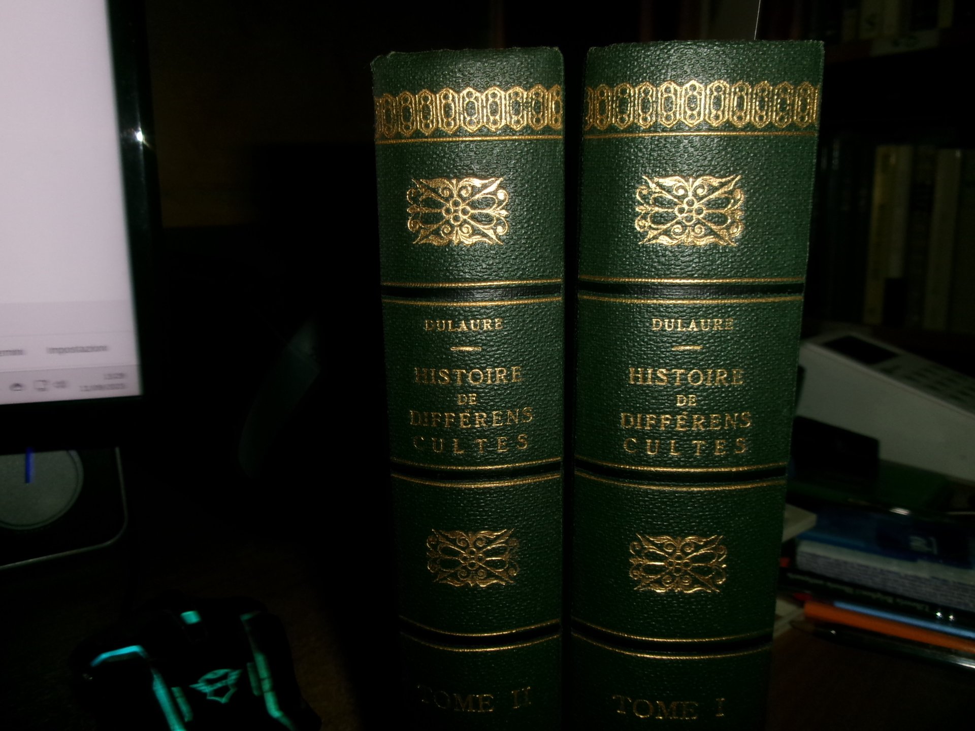 Guillaume, Paris. 1825. TOME PREMIER: DES CULTES QUI ONT PRÉCÉDÉ ET AMENÉ L' IDOLATRIE OU L'ADORATION DES FIGURES HUMAINES.- TOME SECOND: DES DIVINITÈS GÉNÉRATRICES CHEZ LES ANCIENS ET LES MODERNES. SECONDE ÉDITION REVUE , CORRIGÉE ET AUGMENTÉE. 2 VOLUMI IN 8°, tela con fregi e titoli in oro sui dorsi, con le brossure originali conservate, ex libris all' occhietto del tomo 1. (4), X, 558; (4), XVI, 17- 464 PP. CARTA CON LE SOLITE DIFFUSE ARROSSATURE, MA ESEMPLARE BEN CONSERVATO IN BARBE DI QUEST' OPERA RARA. " CETTE HISTOIRE EST, AVEC CELLE DE DUPUIS QUE D' AILLEURS ELLE COMPLÈTE, UNE DES MEILLEURES ET DES PLUS DOCUMENTÉES QUE NOUS POSSEDONS..." ( CAILLET, I, 3340 ). DE GUAITA, 258 : "EDITION RARE". Uff. stanz. TV. mob. nostro