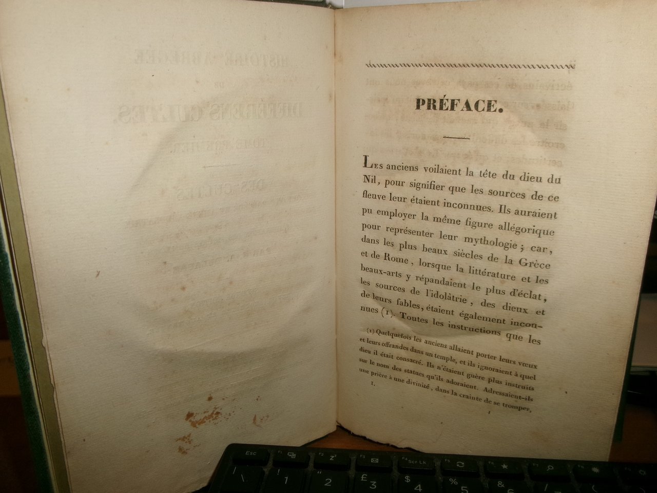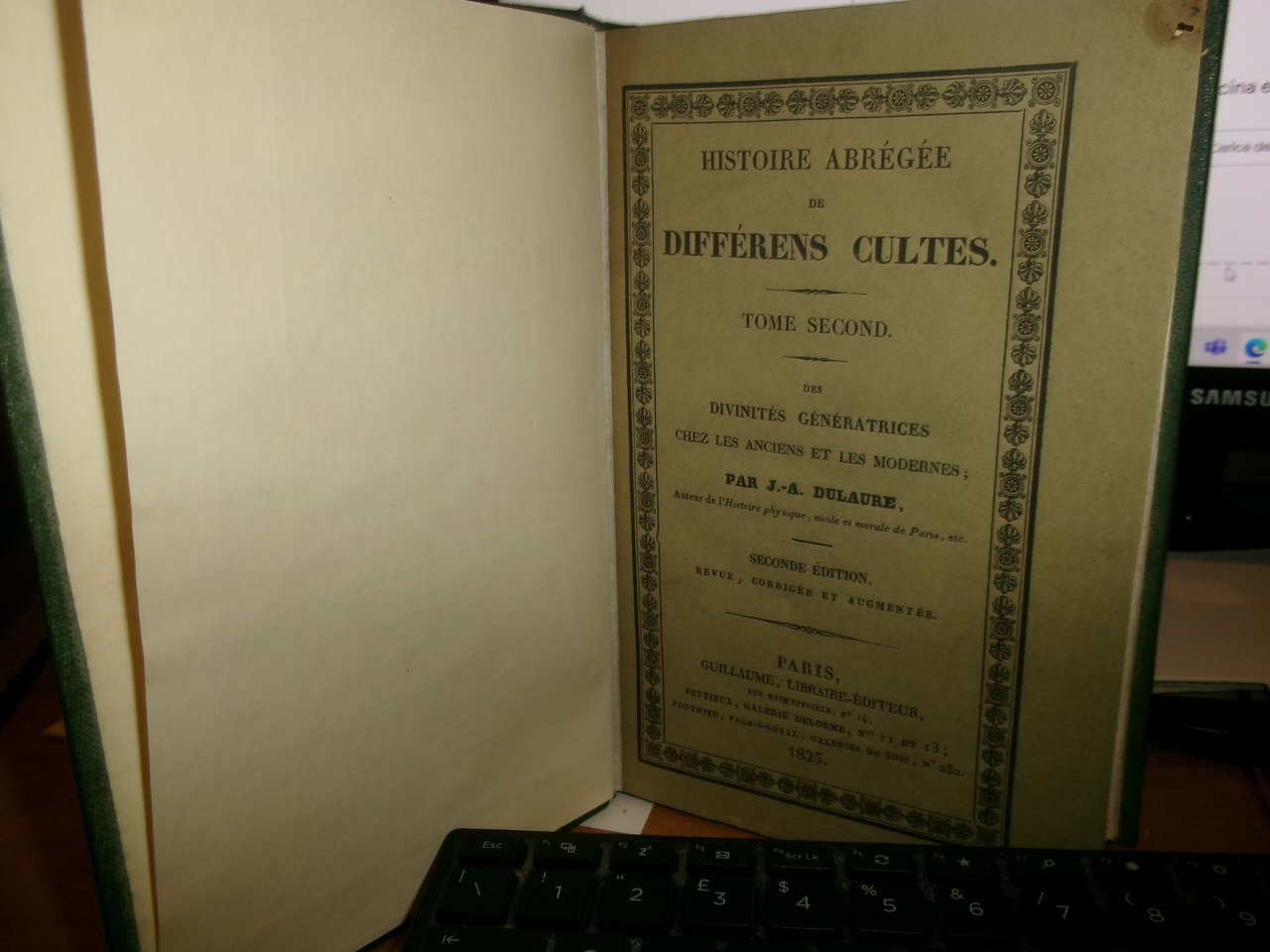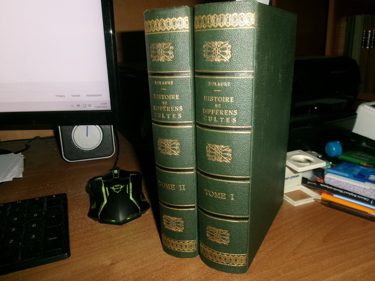 Guillaume, Paris. 1825. TOME PREMIER: DES CULTES QUI ONT PRÉCÉDÉ ET AMENÉ L' IDOLATRIE OU L'ADORATION DES FIGURES HUMAINES.- TOME SECOND: DES DIVINITÈS GÉNÉRATRICES CHEZ LES ANCIENS ET LES MODERNES. SECONDE ÉDITION REVUE , CORRIGÉE ET AUGMENTÉE. 2 VOLUMI IN 8°, tela con fregi e titoli in oro sui dorsi, con le brossure originali conservate, ex libris all' occhietto del tomo 1. (4), X, 558; (4), XVI, 17- 464 PP. CARTA CON LE SOLITE DIFFUSE ARROSSATURE, MA ESEMPLARE BEN CONSERVATO IN BARBE DI QUEST' OPERA RARA. " CETTE HISTOIRE EST, AVEC CELLE DE DUPUIS QUE D' AILLEURS ELLE COMPLÈTE, UNE DES MEILLEURES ET DES PLUS DOCUMENTÉES QUE NOUS POSSEDONS..." ( CAILLET, I, 3340 ). DE GUAITA, 258 : "EDITION RARE". Uff. stanz. TV. mob. nostro