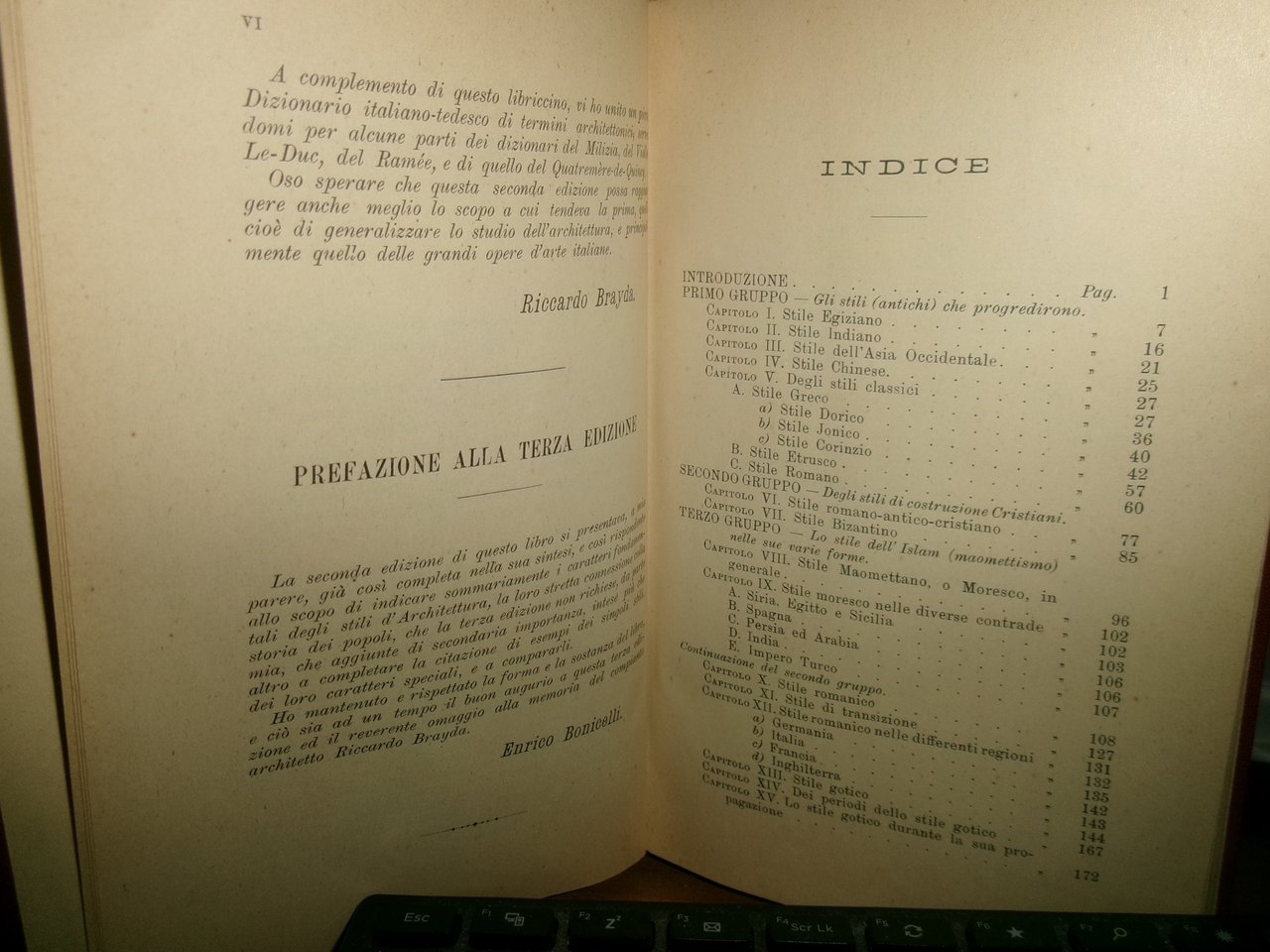 E. Von SACKEN. Stili di ARCHITETTURA. Traduzione con annotazioni di Riccardo Brayda. Terza edizione con aggiunte di Enrico Bonicelli. In-16° grande, m-pergamena con titolo in oro entro tassello al dorso. xii, 251 pp. con 163 incisioni intercalate nel testo. Ben conservato con timbro e firma di ex proprietario nella prima bianca. Normali segni del tempo con piccolo strappetto nel margine bianco delle pp. 47/48. Neg. mob. S