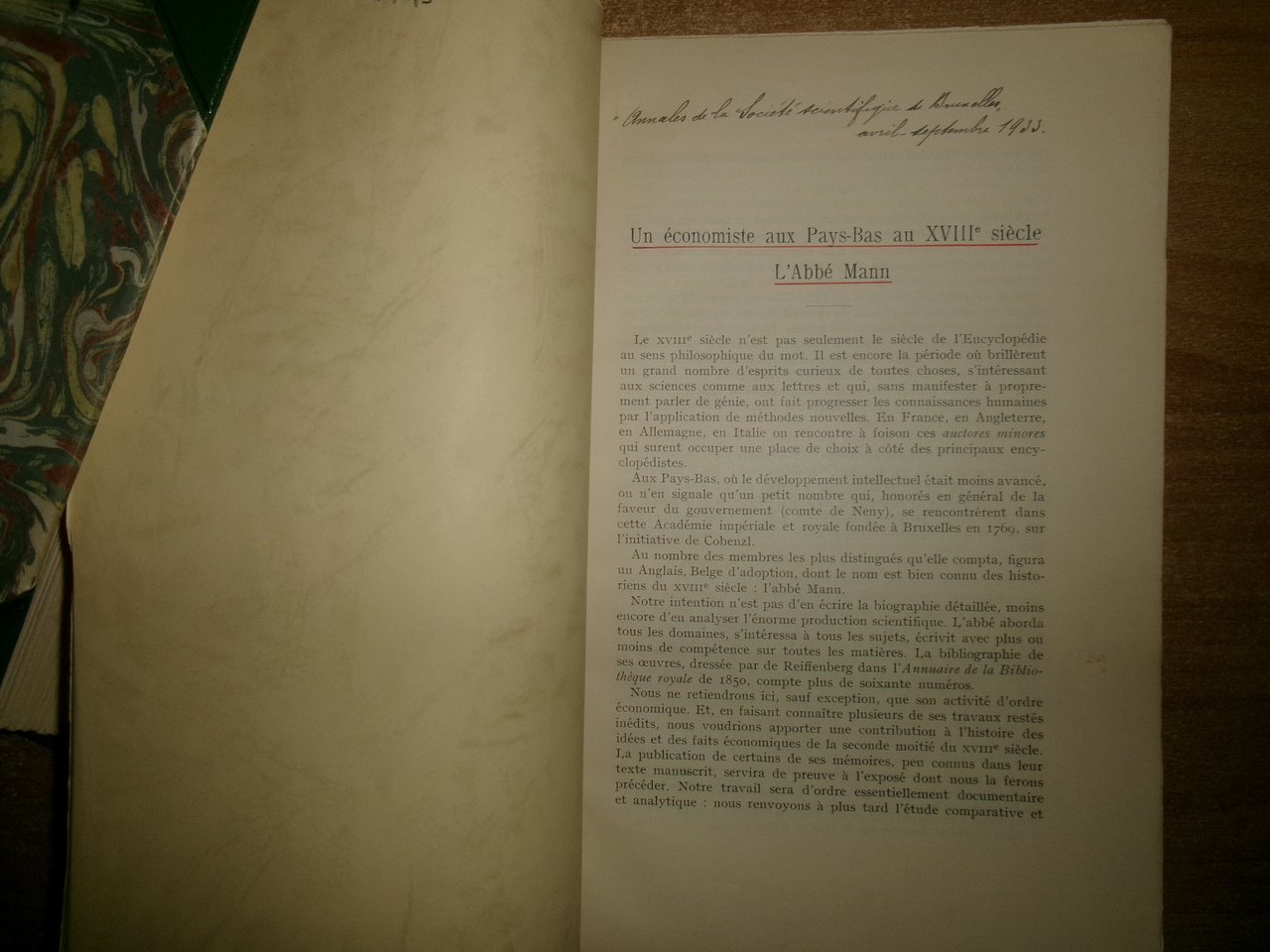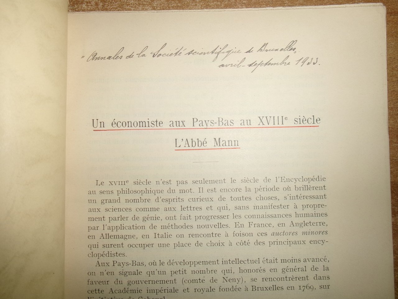 (Economia) Un économiste aux Pays-Bas an XVIII Siècle. L' Abbé Mann 1933