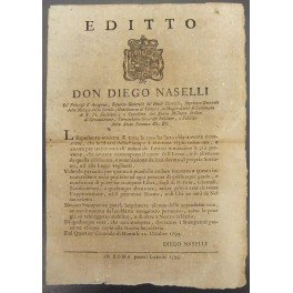 Editto Don Diego Naselli. Divieto di stampare libri, giornali o editti senza l'approvazione del Re