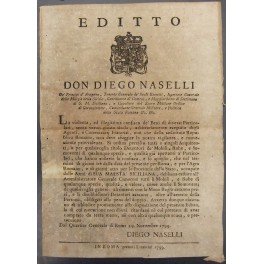 Editto Don Diego Naselli. Esibizione all'Amministrazione Generale di tutti i beni mobili per combattere le confische illeggittime avvenute durante la Repubblica Romana