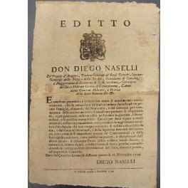 Editto Don Diego Naselli. Invito alla denuncia presso le Autorità del Governo e del Generale Bourcard di truffatori che, spacciandosi per militari, requisiscono beni alle famiglie private