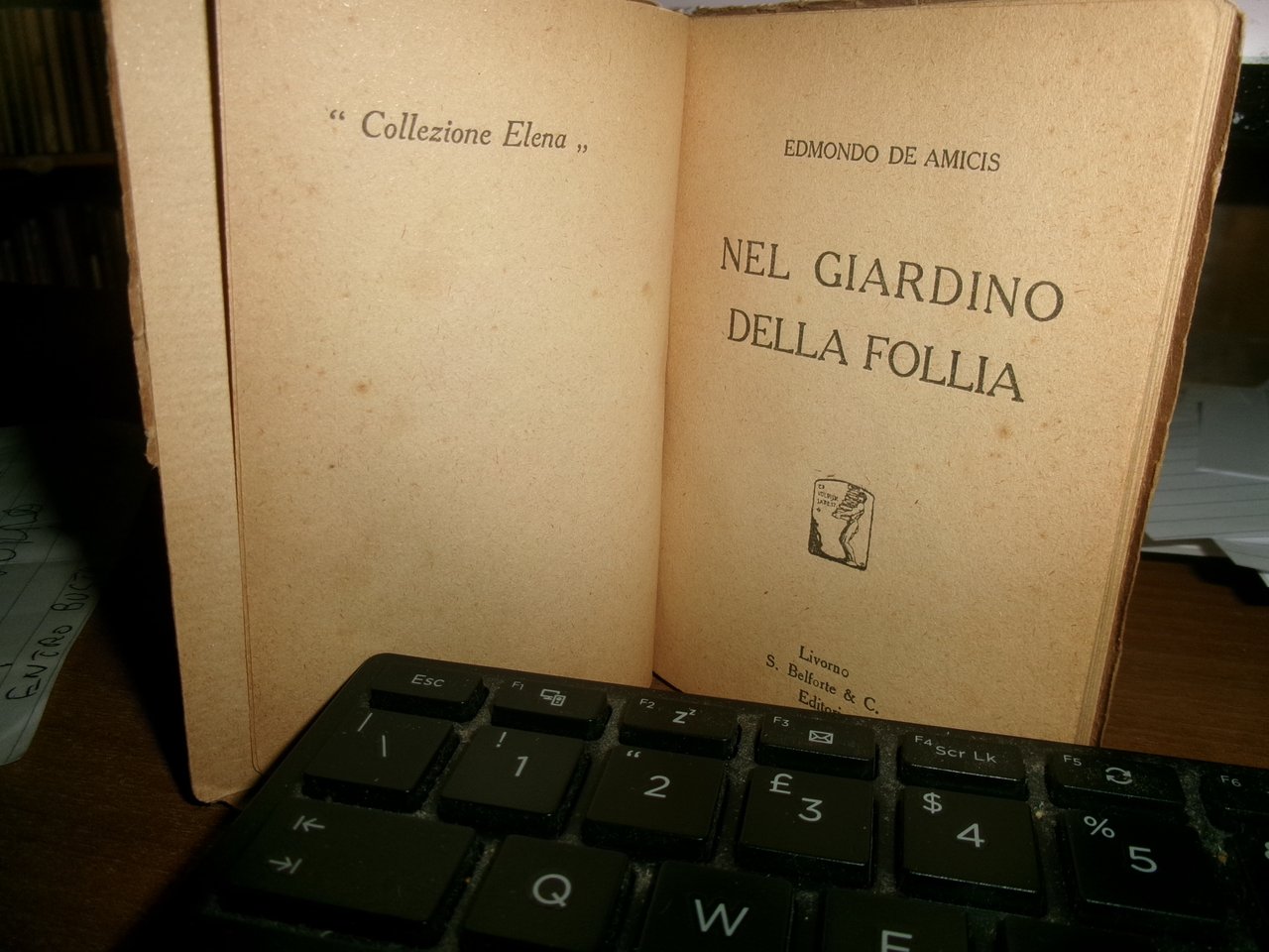 EDMONDO DE AMICIS. Livorno, S. Belforte & C. Editori, s.d. Nel Giardino della Follia . Il Segreto di Gigina. "Collezione Elena". In-24°, cartoncino edit. 107 pp. Ben conservato Neg. lett. mod. mob. M entro busta trasp.