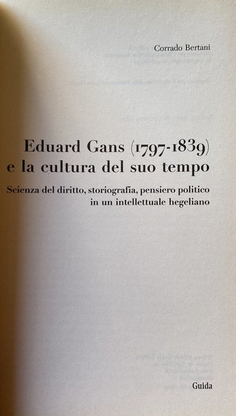 Titolo: Eduard Gans (1797-1839) e la cultura del suo tempo: scienza del diritto, storiografia, pensiero politico in un intellettuale hegeliano