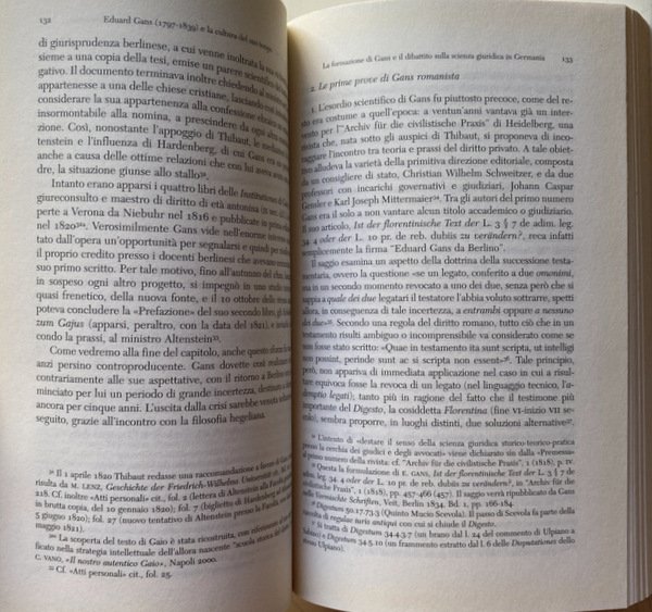Soggetti: Cultura, Filosofia, Idealismo tedesco, Ottocento, Schelling, Holderlin, Marxismo, Dialettica, Storia, Fichte, Hegel, Legislazione, Diritto civile, Giurisprudenza, Germania, Codice napoleonico, Giuristi tedeschi, Scienze giuridiche, Storiografia, Intellettuali, Bibliografia, Opere generali, Critica gansiana, Hans Georg Reissner, Schroder, Berlino, Ambiente ebraico berlinese, Ebrei, Dibattiti, Edoardo Salvetti, Manfred Riedel, Braun, Goethe, Heine, Giurisprudenza, Dogmatica, Savigny, Thibaut, Diritto romano, Diritto privato, Geschichte, Digesto, Germania, Vormarz, Scienza giuridica tedesca, Studi culturali, Riferimento, Libri Vintage Fuori catalogo, Biografie, Erbrecht, Civilrechts, Politica, Possesso, Legislazione, Lezioni, Corsi, Trascrizioni, Lettere, Witte, Wolff, Michelet, Raumer, Niebuhr, Henning, Hugo, Kant, Feuerbach, Altenstein, Culture, Philosophy, German Idealism, Nineteenth Century, Marxism, Dialectics, History, Legislation, Civil Law, Jurisprudence, Germany, Napoleonic Code, German Jurists, Legal Sciences, Historiography, Intellectuals, Bibliography, General Works, Gansian Criticism, Berlin, Berlin Jewish environment, Jews, Debates, Law, Dogmatics, Roman law, Private law, Germany, German legal science, Cultural studies, Reference, Out of print books, Biographies, Civilizations, Politics, Possession, Legislation, Lessons, Courses, Transcripts, Letters, Jewish culture