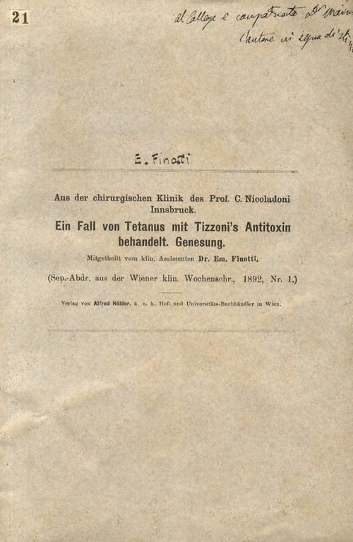 - Finotti E. (Assistenten Aus Der Chirurgischen Klinik Des Prof. C, . Nicoladoni, Innsbruck).