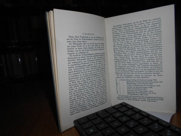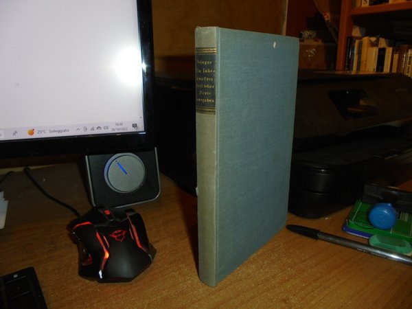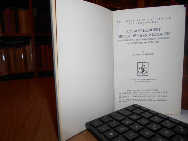 LOTHAR BRIEGER. Ein Jahrhundert deutscher Erstausgaben. Die wichtigsten Erst- und Originalausgaben von etwa 1750 bis etwa 1880. Stuttgart, J. Hoffmann, (1 Jan. 1925). In-16°, tela edit. con titolo in oro al dorso. (v), 206 pp. Ben conservato. Uff. F - 4