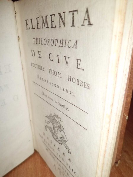 Thom. Hobbes. Basileae, Apud Johan. Jac. Flick, 1782. In - 8°, cartone coevo con titolo in oro sul dorso. lxv, 423 pp. con marca tip. nel front ed alcuni finaletti incisi in rame. Ben conservato.