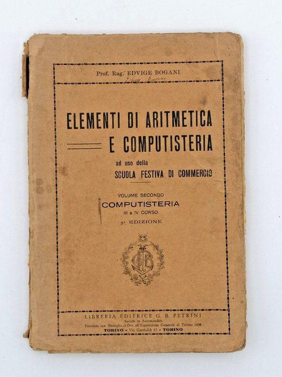 Elementi Di Aritmetica E Computisteria Volume 2 Libro Bogani Petrini 1923 4^ Edi