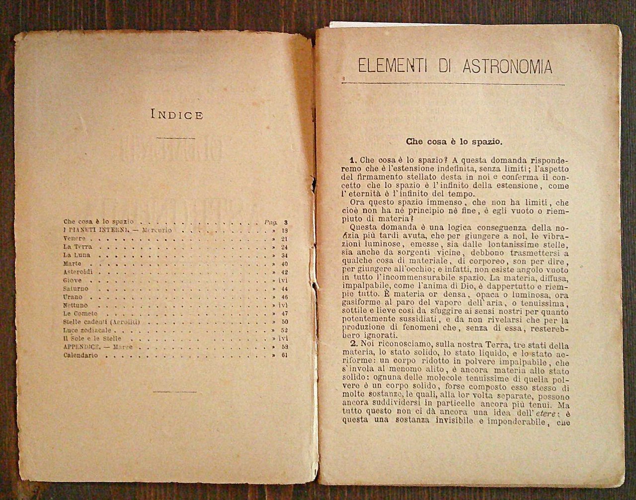 ELEMENTI DI ASTRONOMIA - Biblioteca del Popolo N.8, 1882