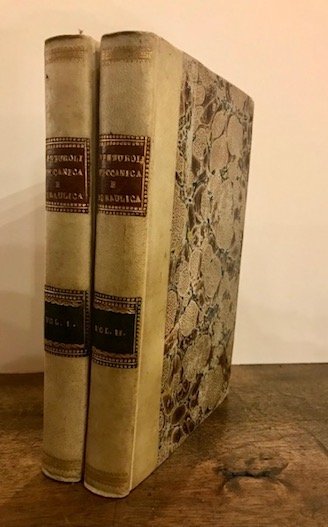8vo (cm. 21), 2 Voll., VIII-302 pp. con 6 tavv. ripiegate f.t.; 2 cc.nn., 281(1) pp. con 7 tavv. ripiegate f.t. Legature coeve in mz. pergamena con fili e titoli oro su doppio tassello in pelle al ds. Lievi ingialliture e qualche piccola macchia, peraltro esemplare in ottimo stato di conservazione. Provenienza: Collezione Moretti, Roma (timbretti ex libris sui frontespizi).