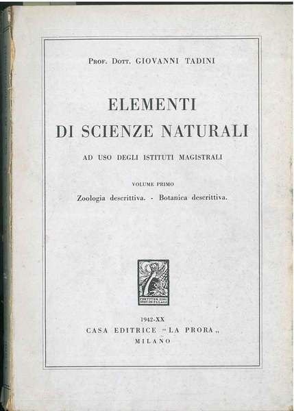 Elementi di scienze naturali. Ad uso degli istituti magistrali. Volume primo