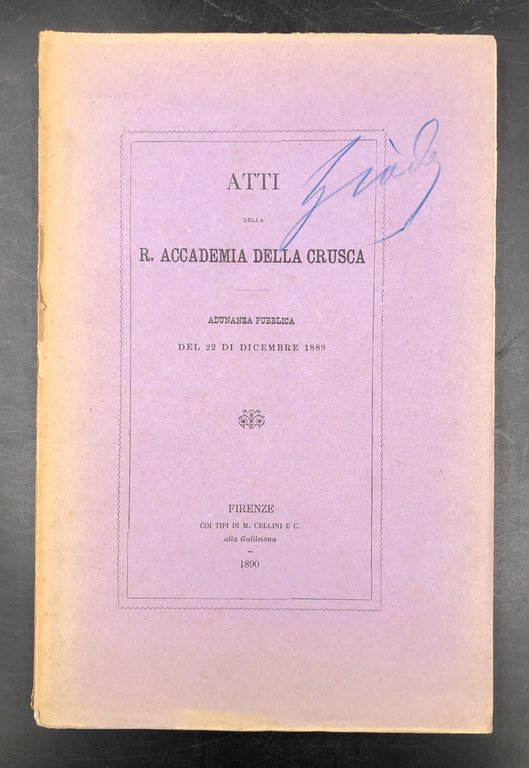 ELOGIO del Segretario Cesare GUASTI letto dall'Accademico Residente Isidoro Del Lungo. In: Atti della R: Accademia della Crusca 22 dicembre 1889.