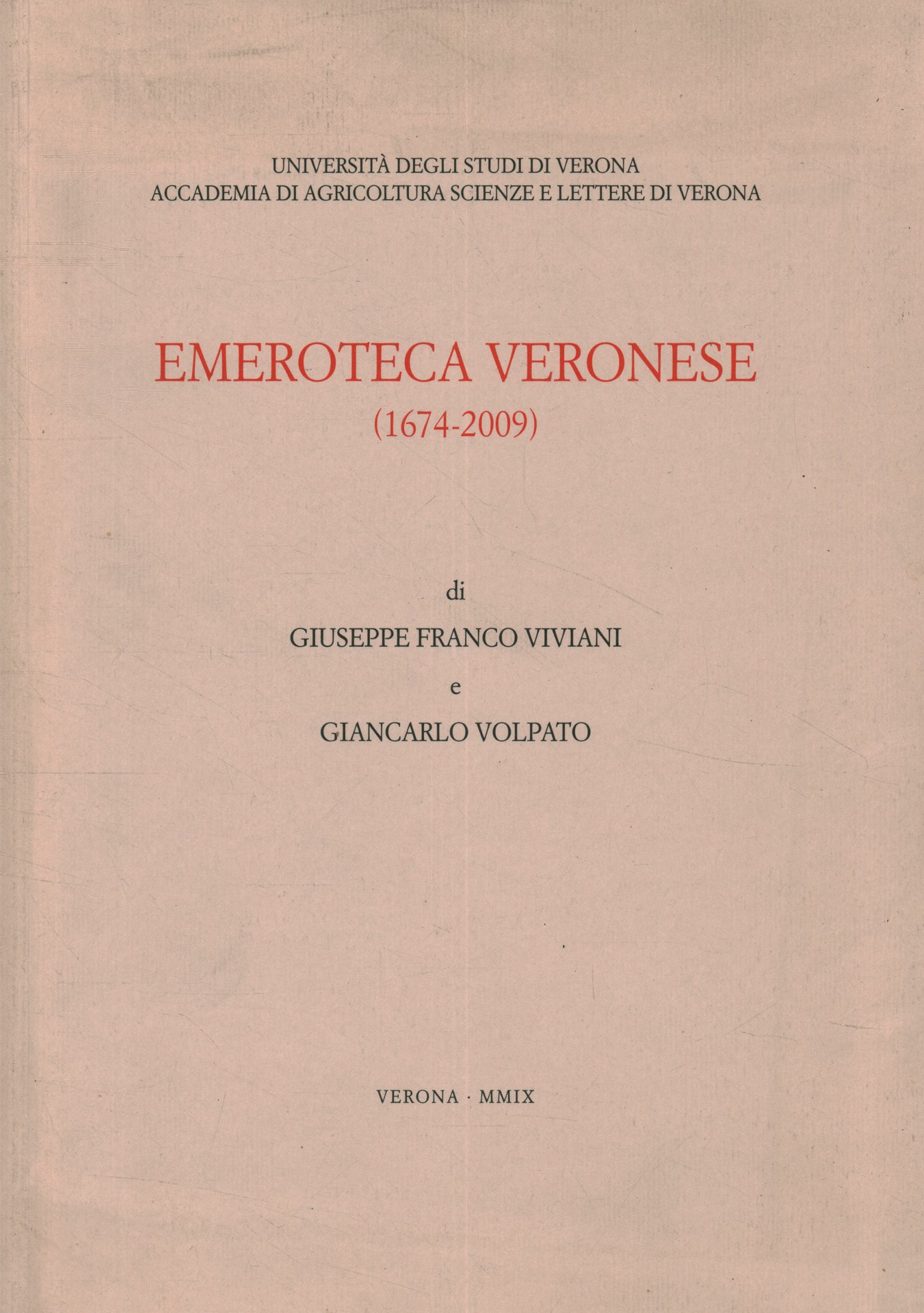 Emeroteca veronese (1674-2009) | Libri antichi e moderni | Giuseppe Franco Viviani, Giancarlo Volpato