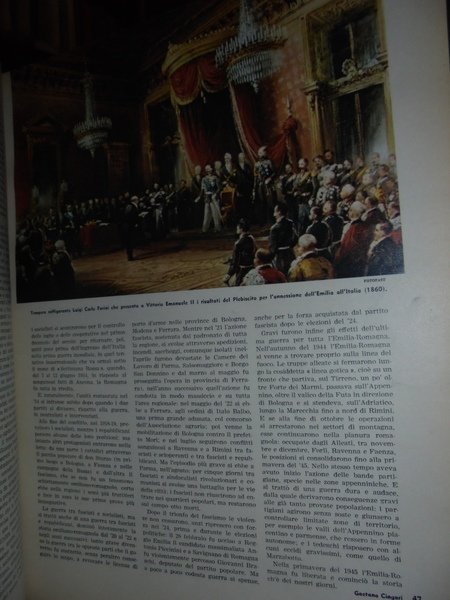 AA. VV. Tipografia anonima. Senza data (c. 1960). In-4°, legatura amatoriale in m. tela. 691 pp. con innumerevoli illustrazioni fotografiche a colori e in bianco e nero. Raro volume in perfetto stato di conservazione che racconta la storia dell' Emilia e Romagna sotto il profilo storico, artistico e culurale. Neg. magazz.