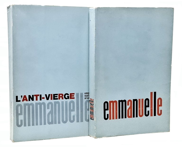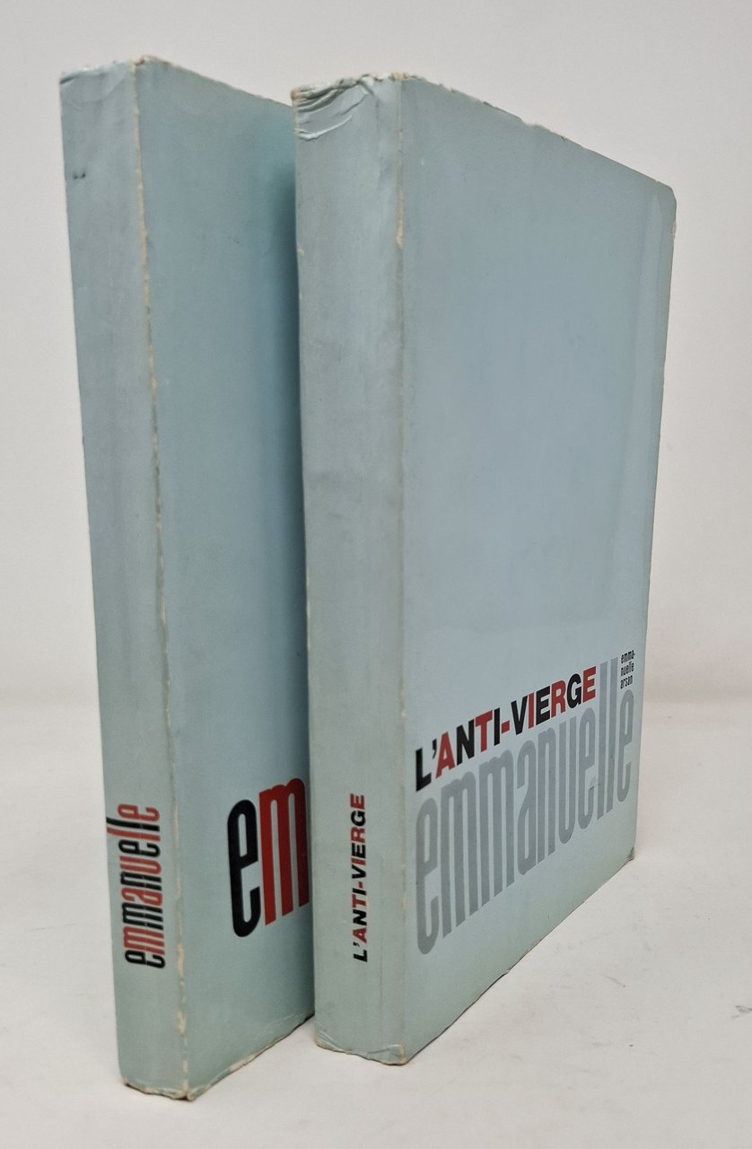 Due volumi dell'autrice francese Emmanuelle Arsan: 'Emmanuelle' (1967) e 'L'anti-vierge' (1968). In lingua francese. Pagine: 231;293. Formato: 14,5 x 23 cm circa. Stato di conservazione: Il secondo volume presenta i bordi delle pagine decisamente frastagliati a causa di una non accurata separazione delle pagine da parte del primo proprietario del volume, qualche leggero allentamento della rilegatura in due o tre punti (le pagine sono tutte saldamente ancorate ma in alcuni punti si sono creati leggeri solchi tra due pagine frontali) ma, nel complesso, due buoni esemplari. Un classico, di enorme successo, della letteratura erotica degli anni '60 del secolo scorso.