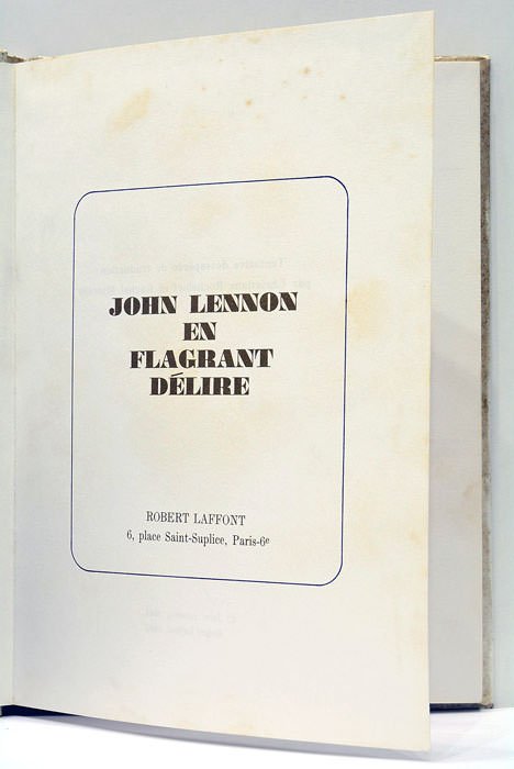 85 pages. (20x14 Cm). Cartonnage d'éditeur. Couverture illustrée par une photographie en noir et blanc et imprimée en couleurs. Plats salis. Dessins de John Lennon et mise en pages de Robert Freeman. La version française est dédiée à Boris Vian. Introduction de Paul Mc Cartney. Ouvrage imprimé en bleu et vert. Bon état. Rares salissures en corps-d'ouvrage.