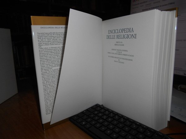 Diretta da Mircea Eliade. Milano/Roma, Jaca Book, Marzorati, 1997. Enciclopedia delle Religioni. Mircea Eliade. IL PENSIERO. Volume 4. In-4°, tela edit. azzurra con titoli, sovracopertina. 684 pp. con alcune illustrazioni n.t. Come nuovo con astuccio in cartoncino muto. Uff. stanzetta mob. destra.