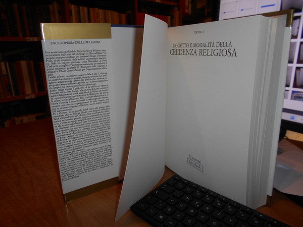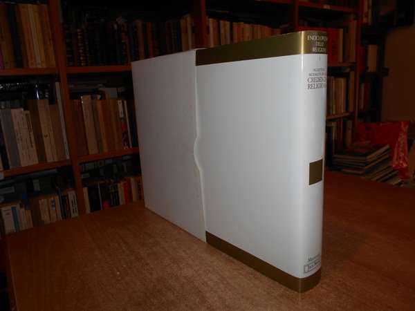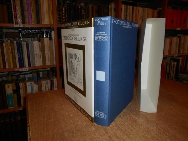 Diretta da Mircea Eliade. Milano, Jaca Book, Marzorati, 1993. ENCICLOPEDIA DELLE RELIGIONI VOL 1: OGGETTO E MODALITÀ DELLA CREDENZA RELIGIOSA. In-4°, tela edit. azzurra con titoli e sovracopertina. 614 pp. Come nuovo con astuccio in cartoncino muto. Uff. stanzetta mob. a destra.