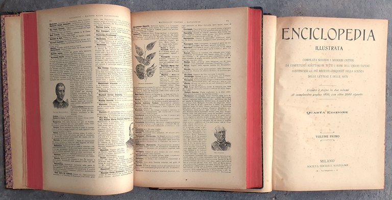 IV ed. L'opera è divisa in due volumi di complessive pagine 1600, con oltre 2000 vignette". In-8, pp. 1600 (I vol.,A-F, pp. 6 non numerate+1-800+4 non numerate; II vol., G-Z, pp. 8 non numerate+1-800+4 non numerate), cart. (dorsi in pelle). Illustrazioni in nero. Stato buono" con fioriture.