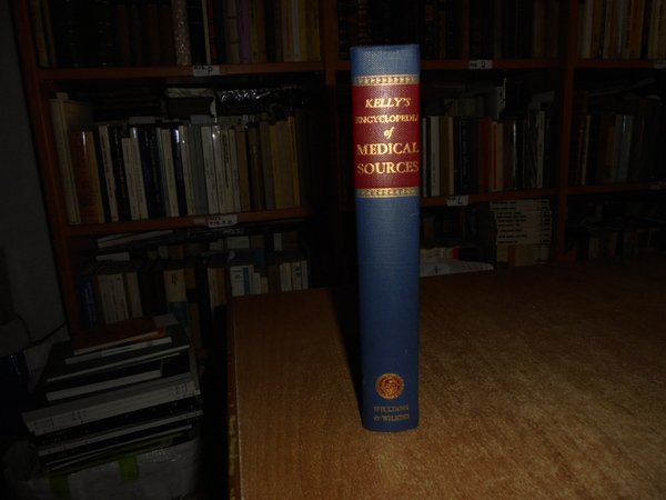 by Emerson Crosby Kelly. Baltimore, The Williams & Wilkins Company, 1948. ENCYCLOPEDIA of MEDICAL SOURCES. In-8°, tela edit. bleu con titolo in oro al dorso. (ii), 476 pp. Ottimo esemplare. Uff. D - II - 1