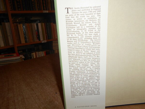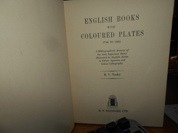 R. V. TOOLEY. London, B. T. Batsford, 1954. English Books with Coloured Plates 1790 to 1860. A Bibliographical Account of the most Important Books illustrated by English Artist in Colour Aquatint and Colour Lithography. In-8° grande, tela bleu con fregi e titolo in oro al dorso, sovracopertina. vii, 424 pp. Perfetto esemplare. Uff. E - V - 5