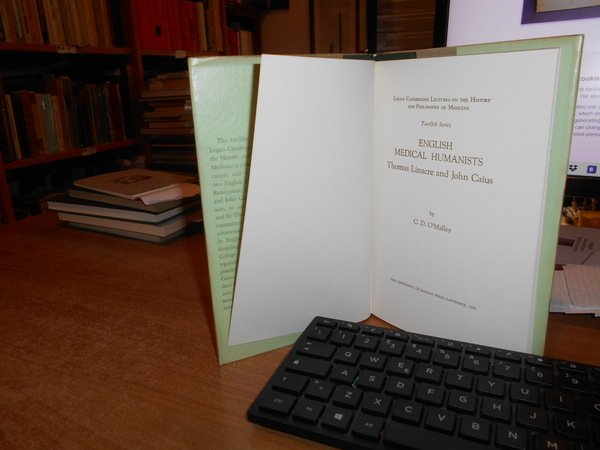 C.D. O' MALLEY. U.S.A., The University of Kansas Press, Lawrence, 1965. Logan Clendening Lectures on the History and Philosophy of Medicine. ENGLISH MEDICAL HUMANISTS. Thomas Linacre and John Caius. In-8° piccolo, tela verde con doppia sovracopertina. (iv), 54 pp. Come nuovo. Uff. C - II - 6