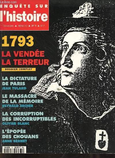 Enquête sur l'histoire n°5 hiver 1993 - Révolution la fin d'un mythe - les événements 189-1799 - qui gouvernait sous la terreur ? - la religion révolutionnaire - la corruption des incorruptibles - des intellectuels contre la révolution etc.