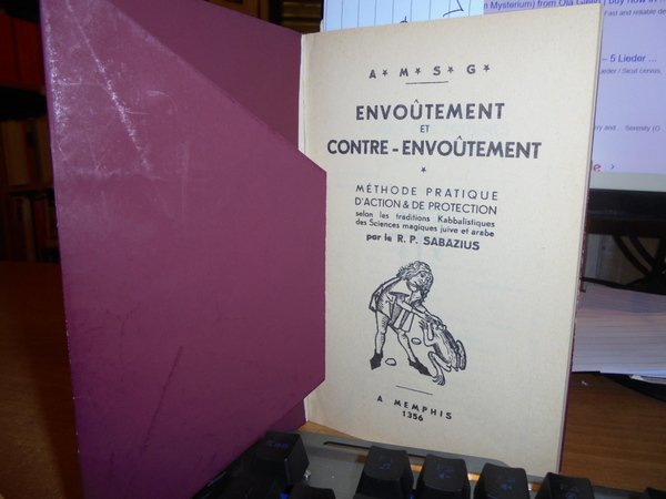 Par R.P. SABAZIUS. Paris, 1977. Envoûtement et Contre-Envoûtement - Méthode pratique d'action et de protection selon les traditions kabbalistiques des Sciences magiques juive et arabe. In-16°, cart. edit. orig. con sovracopertina viola. 166 pp. con alcune illustrazioni nel testo. Ottimo stato di conservazione. Neg. esot mob. 51 entro busta trasp.