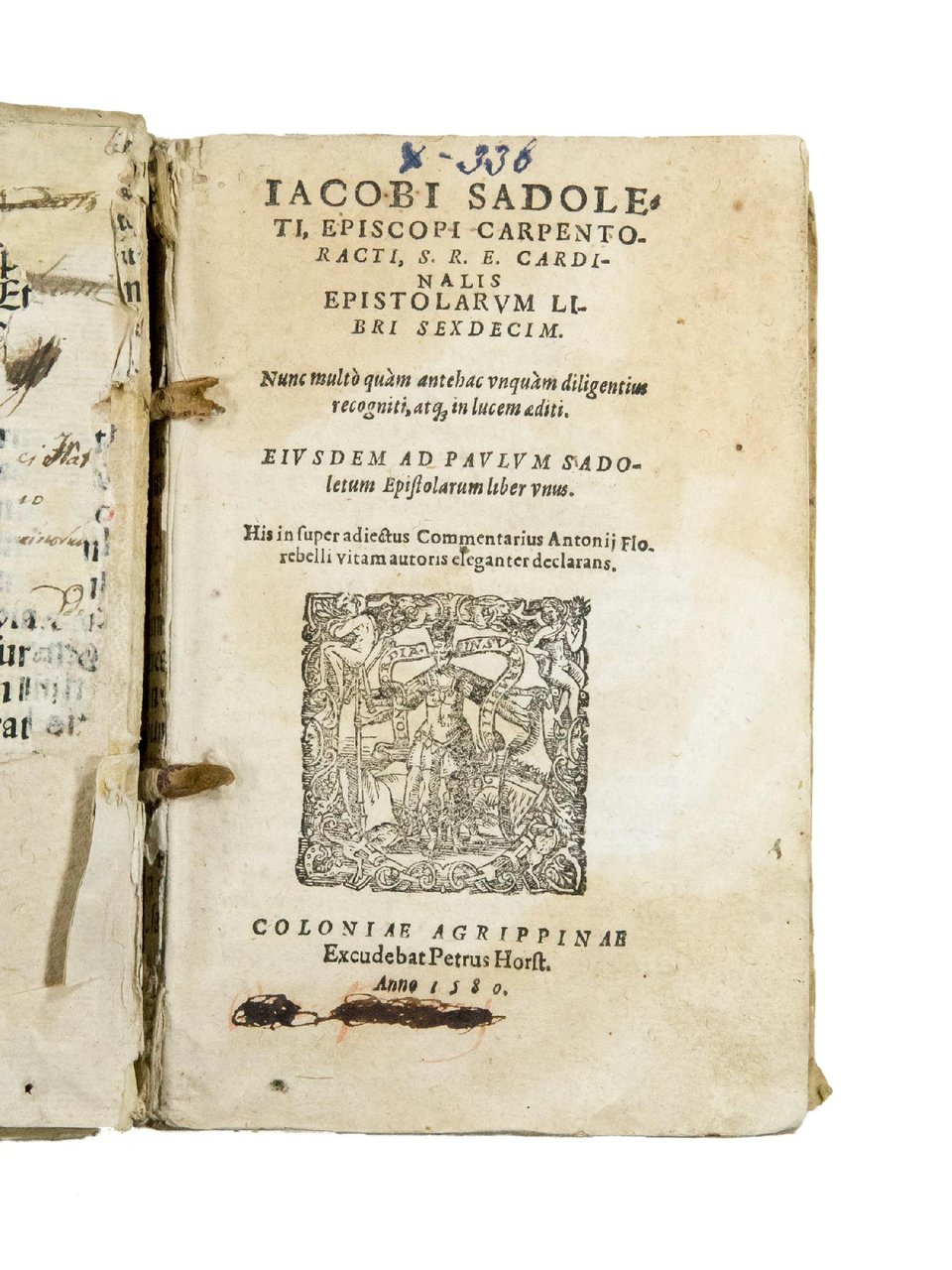 FOUR YEARS after their first publication at Lyon in 1550, Sadoleto's letters were already reprinted in Germany (Cologne), where his epistolary had the greatest diffusion with ten editions until the end of the century (1554 - 3 editions, 1564 - 2 editions, 1567, 1572, 1575, 1580, and 1590). In the present Cologne edition the prefatory letter by Paolo Sadoleto and the Index are retained, as well as Sadoleto's biography by Antonio Fiordibello (here printed immediately after Paolo's letter). The remaining of the volume is a literal reprint of the first edition.