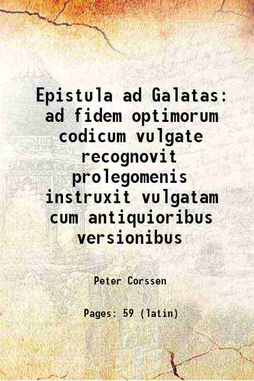 Epistula ad Galatas ad fidem optimorum codicum vulgate recognovit prolegomenis instruxit vulgatam cum antiquioribus versionibus 1885