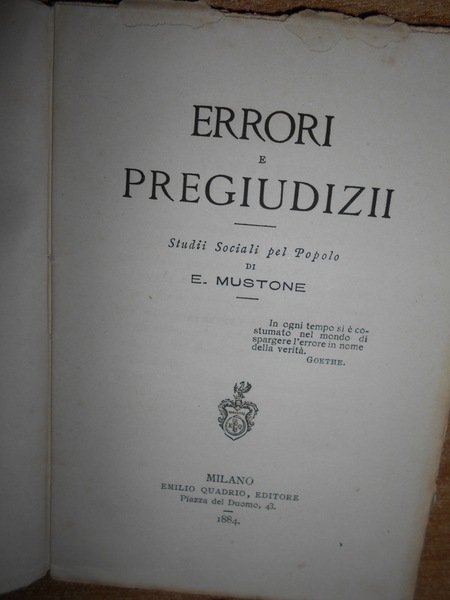 Ettore, Mustone. Milano, Emilio Quadrio Editore, 1884. In-16° piccolo, br. orig. 114, (5) pp. In buono stato di conservazione. Neg. scat. rossa opuscoli nonn.
