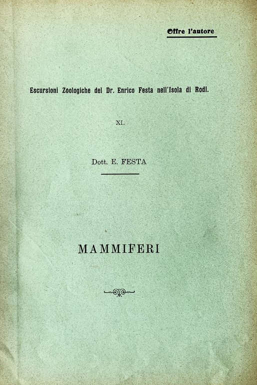 Escursioni Zoologiche del Dr. Enrico Festa nell'Isola di Rodi. XI. Mammiferi