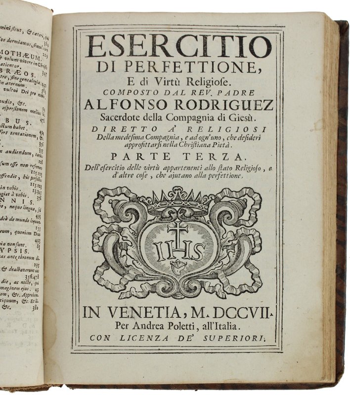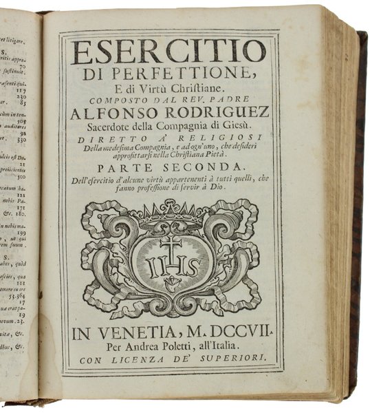 ESERCITIO DI PERFETTIONE, E DI VIRTU' CRISTIANE Composto dal rev. padre Alfonso Rodriguez sacerdote della Compagnia di Giesù. Diviso in tre parti, diretto a' religiosi Della medesima Compagnia - Parte Prima - Parte Seconda - Parte Terza | Libri antichi e moderni | Rodriguez Alfonso.