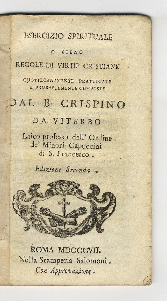 ESERCIZIO spirituale o siano regole di virtù cristiane, quotidianamente praticate e probabilmente composte dal B. Crispino da Viterbo. [.] Edizione seconda.