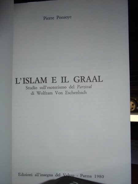 (Esoterismo) Pierre, Ponsoye. Parma, Edizioni all' Insegna del Veltro,1980. L' Islam e il Graal. In-8° piccolo, cartoncino edit. con sovracopertina in acetato. 138, (1) pp. In stato di nuovo. Uff. stanz. TV. esot.