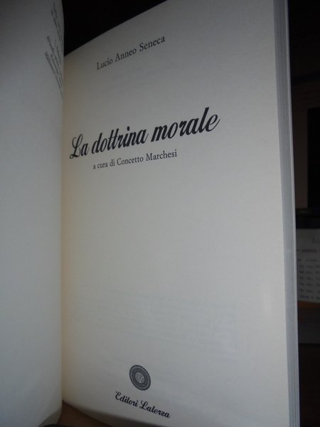 (Esoterismo) SENECA Lucio Anneo. Bari, Laterza, 1994. La dottrina morale. A cura di Concetto Marchesi. In-8° piccolo, cartoncino edit. 117, (1) pp. Come nuovo. Uff. stanz. TV.