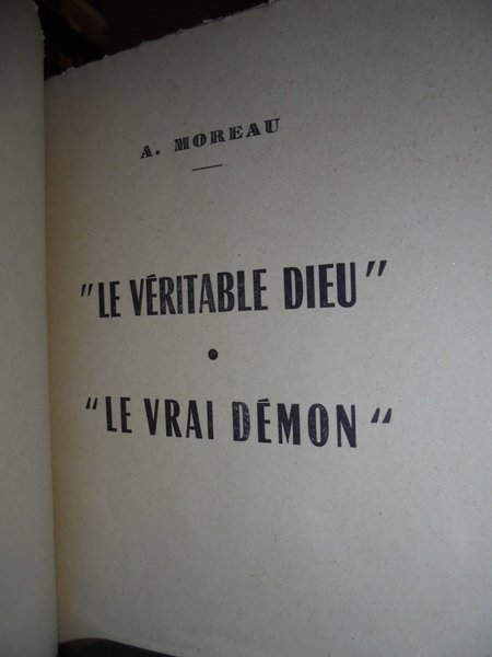 (Esoterismo) A. Moreau. Senza Editore - Senza data. "Le Véritable Dieu" "Le Vrai Démon". In-8° piccolo, br. orig. 203, (7) pp. Ben conservato con barbe. Neg. mens. bianca cassa