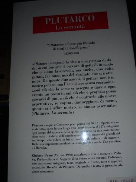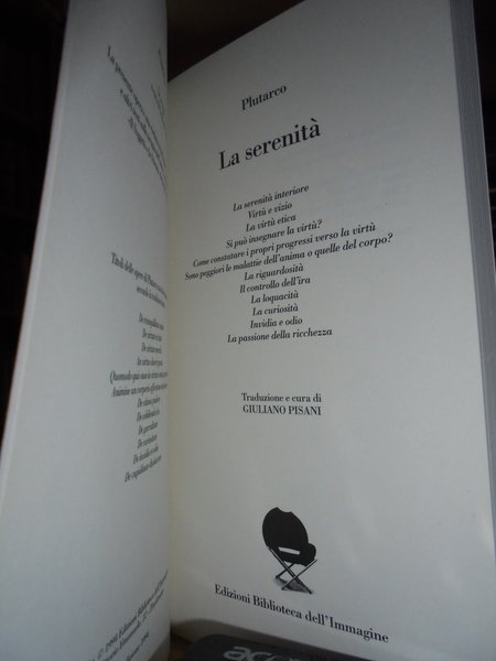 (Esoterismo) PLUARCO. La Serenità. Pordenone, Edizioni Biblioteca dell' Immagine, 1994. In-8°, cartoncino edit. 322, (1) pp. Come nuovo. Uff. stanz. TV. esot.