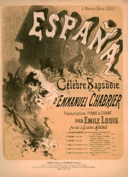 España. Célèbre rapsodie. Transcriptions Piano & Chant par Emile Louis. Paroles d`Eugène Adenis. No. 5. Duo à 2 voix égales, en ré (Mezzo-soprano et contralto ou baryton et basse)