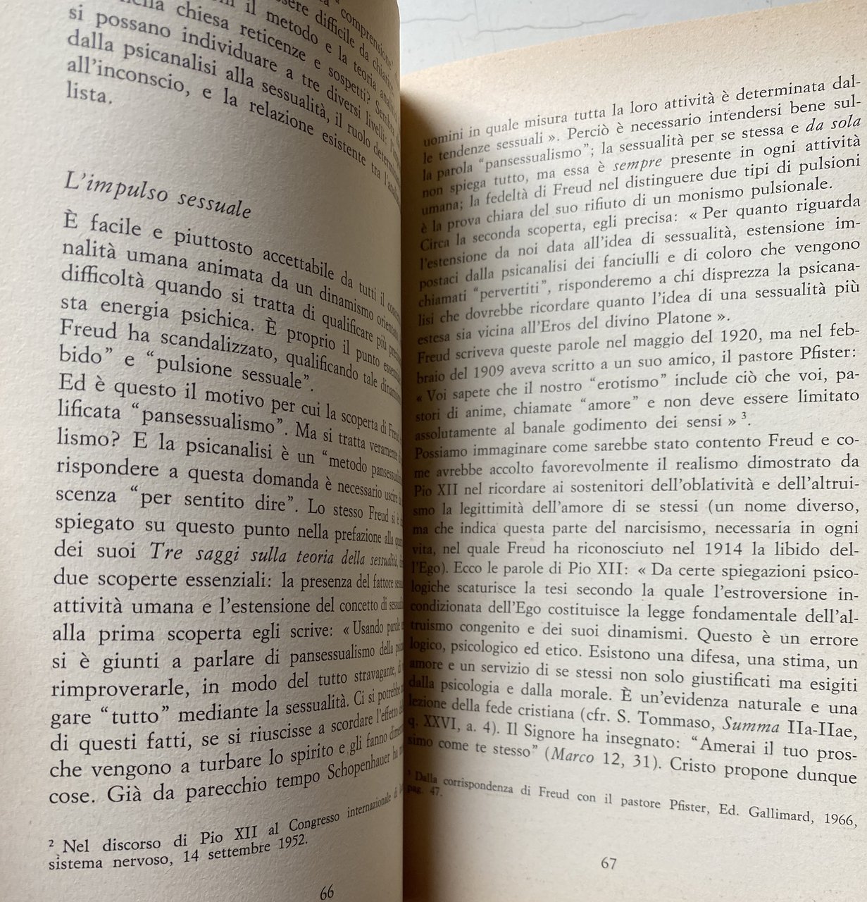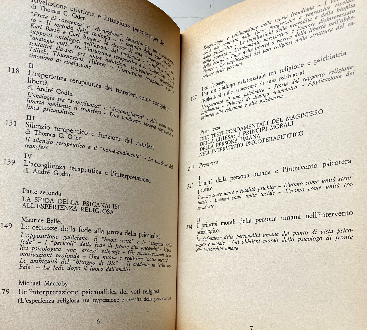 - Chiesa, Psicanalisi, Fede, Religione, Teologia, Inconscio, Sessualità, Impulso sessuale, Psicologia, Cristianesimo, Cattolicesimo, Rivelazione, Esperienza terapeutica, Transfert, Libertà, Castità, Vocazione, Preti, Verginità, Meditazioni, Morale, Etica, Biofilia, Necrofilia, Carattere, Comportamento, Obbedienza, Dogma, Voti religiosi, Psicoterapia, Malessere, Obblighi morali, Intervento psicoterapeutico, Magistero, Psichiatria, Coscienza, Tentazioni, Karl Barth, Narcisismo, Carl Rogers, Hilther, Colpa, Peccato, Trasgressione, Regressione, Ontologia, Libri rari, Psicoanalisi, Counseling, Gestalt