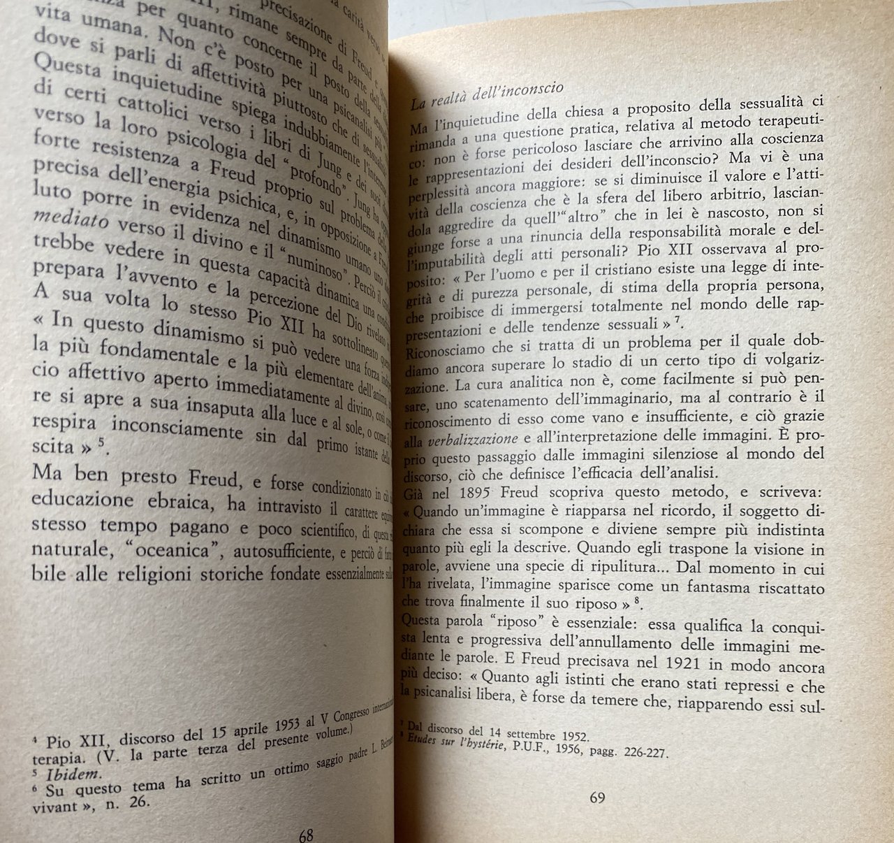 Soggetti: Chiesa, Psicanalisi, Fede, Religione, Teologia, Inconscio, Sessualità, Impulso sessuale, Matrimonio, Psicologia, Cristianesimo, Cattolicesimo, Analisi psicologica, Rivelazione, Esperienza terapeutica, Transfert, Libertà, Castità, Vocazione, Preti, Verginità, Relazioni, Meditazioni, Morale, Etica, Dialogo, Biofilia, Necrofilia, Morte, Carattere, Comportamento, Povertà, Obbedienza, Dogma, Voti religiosi, Psicoterapia, Malessere, Amore disinteressato, Personalità umana, Obblighi morali, Intervento psicoterapeutico, Magistero, Psichiatria, Coscienza, Tentazioni, Karl Barth, Isolamento narcisistico, Narcisismo, Carl Rogers, Seward Hiltner, Colpa, Peccato, Peccati, Trasgressione, Regressione, Ontologia, Tillich, Analogia Fidei, Eduard Thurneysen, Pastorale, Nevrosi, Saggi, Libri rari Vintage fuori catalogo, Riferimento, Bibliografia, Studi, Menninger Foundation, Freud, Descleé De Brouwer, W.W. Meissner, Silenzio terapeutico, Kenosi, Dio, Rifiuto, Salvezza, Anima, Versagung, Frustrazione, Esaudimento, Critica, Interpretazione, Cultura, Jung, Esperienza, Mistica, Ascesi, Dio, Nietzsche, Feuerbach, Marxismo, Filosofia, Complesso, Edipo, Repressione, Padre, Simbolismo, Simboli, Isteria, Desiderio, Pio XII, Inquietudine, Insight, Intuizione, Counseling, Metafisica, Accettazione, Perdono, F. Paddock, Robert Harold Bonthius, Counselor, Wolff, Kreutzer, Jaspers, Hartmann, Wheeler, Sentimenti, Bisogni, Cultura, Motivazioni, Ontologia, Metodo, Theodor Reik, Clero, Monitum, Sacerdoti, Laici, Relazione analitica, Jacques Lacan, Perversione, Virilità, Libri introvabili, Terapia rogersiana, Non-esaudimento, Somiglianza, Dissomiglianza, Accoglienza terapeutica, Gestalt, Coaching, Conflitti, Viktor Emil Frankl, Erich Fromm, Monoteismo, Mosè, Oskar Pfister, Martin Heidegger, Cesare Musatti, Confessione, Psychoanalyse, Beichte, Dibattiti, Psicoanalisi, J. A. Hadfield Karen Horney, Emil Brunner, Accettazione, Dinamica, Hans Prinzhorn, Protestantesimo, Calvino, Reinhold Niebuhr, Olive Wyon Percorso Clinica ospedali psichiatrici Sanatorio Topeka Kansas Church Psychoanalysis Faith Religion Theology Unconscious Sexuality Sexual impulse Marriage Psychology Christianity Catholicism Psychological analysis Revelation Therapeutic experience Freedom Chastity Vocation Priests Virginity Relationships Meditations Ethics Dialogue Biophilia Necrophilia Death Character Behavior Poverty Obedience Religious vows Psychotherapy Malaise Selfless love Human personality Moral obligations Psychotherapeutic intervention Magisterium Psychiatry Conscience Temptations Narcissistic isolation Narcissism Guilt Sins Transgression Regression Ontology Pastoral Neurosis Essays Rare books out of print Reference Bibliography Studies Therapeutic silence Kenosis God Rejection Salvation Soul Frustration Fulfillment Criticism Interpretation Culture Experience Mysticism Ascesis God Marxism Philosophy Complex Oedipus Repression Father Symbolism Symbols Hysteria Desire Pius XII Restlessness Intuition Metaphysics Acceptance Forgiveness Feelings Needs Culture Motivations Ontology Method Clergy Priests Laity, Analytical relationship Perversion Virility Hard to find books Rogerian therapy Non-fulfillment Similarity Dissimilarity Therapeutic reception Conflicts Monotheism Moses Confession Debates Psychoanalysis Acceptance Dynamics Protestantism Calvin Path Clinic Psychiatric hospitals Sanatorium
