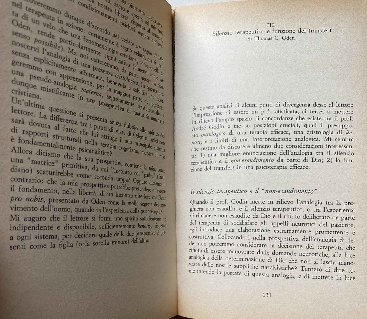 III Silenzio terapeutico e funzione del transfert, Thomas. C. Oden