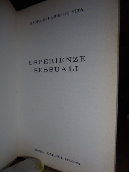 Gaspare Paris - De Vita. Bologna, Edizioni Capitol, 1966. Esperienze sessuali. In-16°, cartonato edit. 109 pp. In ottimo stato di conservazione. Neg. erot. mob. B.