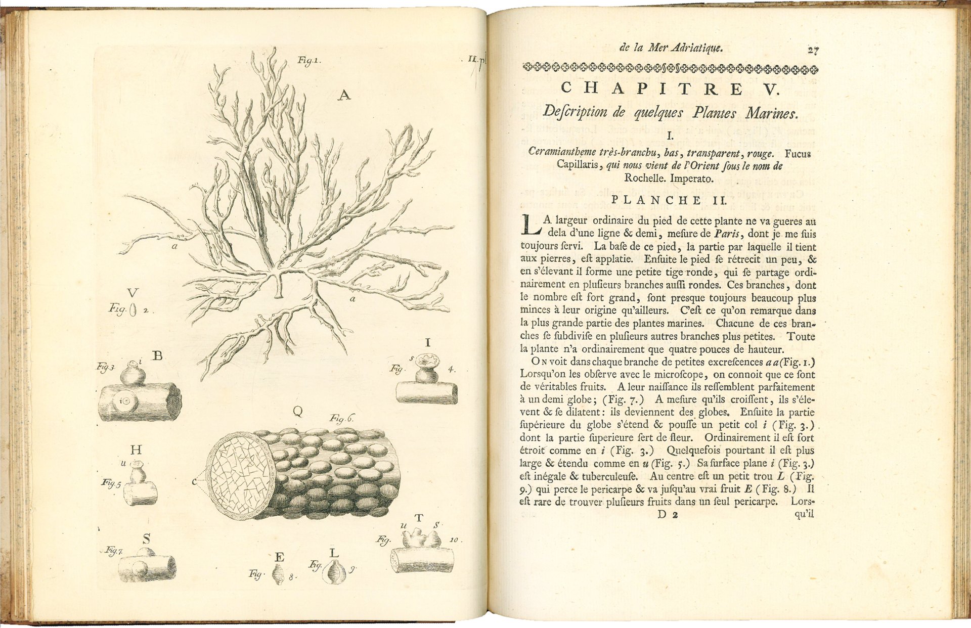 Essai sur l'histoire naturelle de la mer Adriatique par le docteur Vitaliano Donati, avec une lettre du docteur Leonard Sesler, sur une nouvelle espece de plante terrestre, traduit de l'Italien