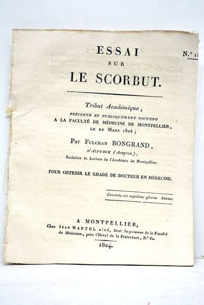 Essai sur le scorbut. Tribut académique, présenté et publiquement soutenu à la Faculté de Médecine de Montpellier le 22 mars 1824.