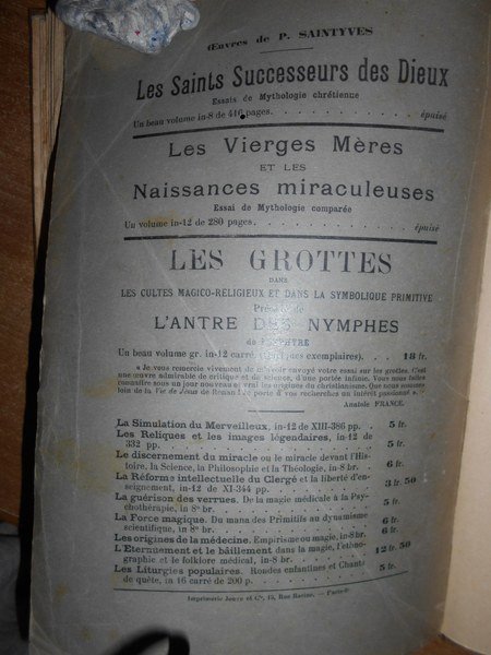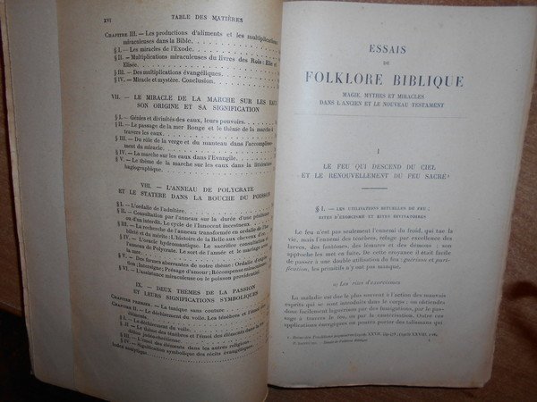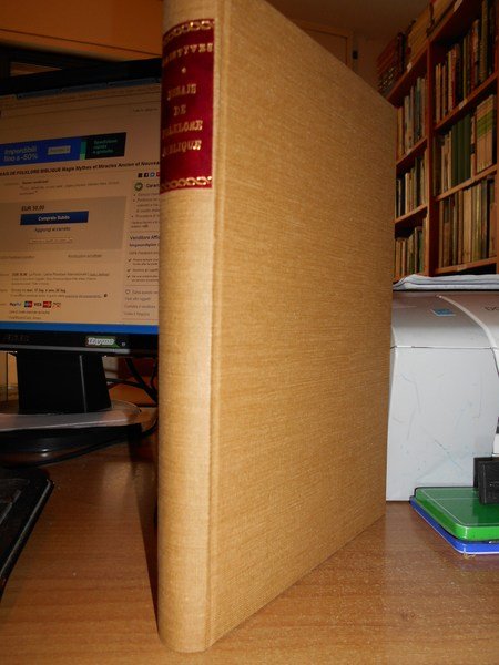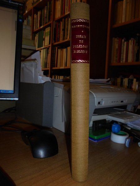 P. Saintyves. Paris, Librairie Critique Emile Nourry, 1923. Essais de Folklore Biblique. Magie, Mythes et Miracles dans l' Ancien et le Nouveau Testament. In-8°, tela con titolo in oro entro tassello al dorso, copertine originali conservate. xvi, 483 pp. Ottimo esemplare in legatura nuova con le brossure originali conservate. Uff. TV. mob. nostro