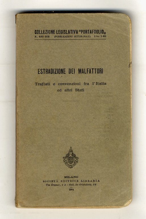 ESTRADIZIONE dei malfattori. Trattati e convenzioni fra l'Italia ed altri Stati.