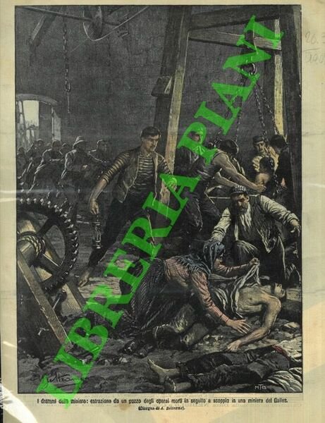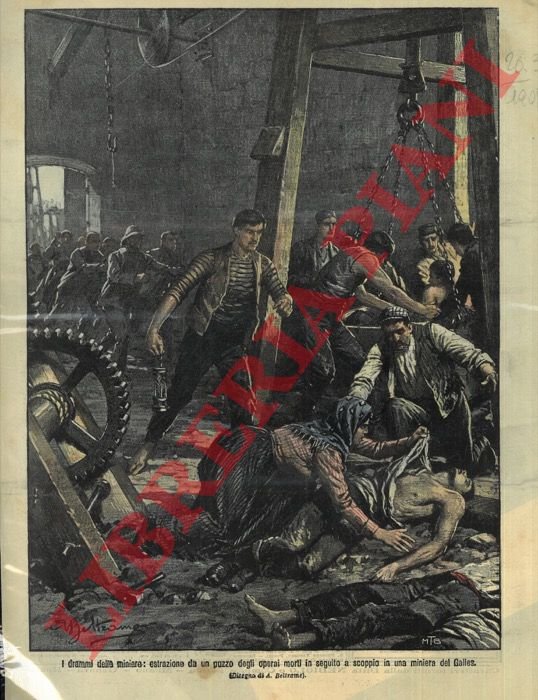 Estrazione di operai da un pozzo dopo uno scoppio in una minera del Galles.